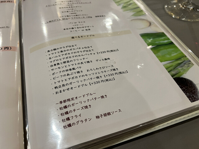 オードブルは選択肢が多く、冬ということもあり牡蠣のグラタン柚子胡椒ソースを選ぶ。