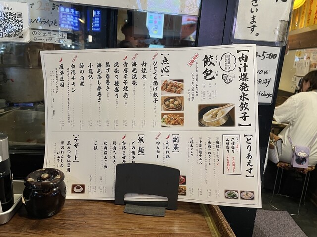 メニュー構成は、店名にある通り水餃子(餃包)がメインの柱だ。水餃子以外にも、焼売や揚げ春巻きといった点心に加え、麻婆豆腐、台湾まぜそば、ちまきなど、幅広い中華料理が揃っている。