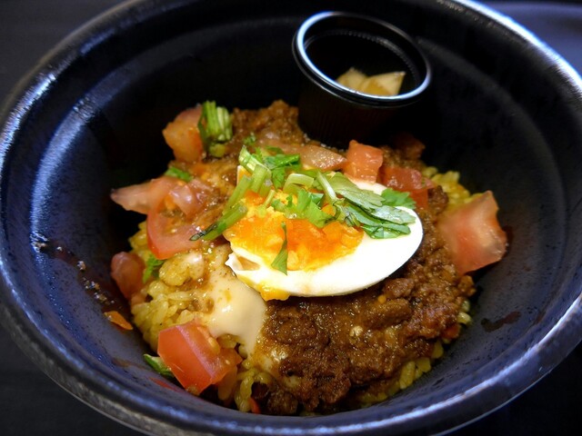 こちらは、ベジラムキーマとは違って、ラムキーマにトマト、チーズと茹で卵が印象的。