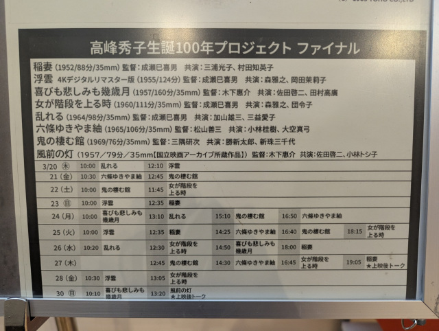 「高峰秀子生誕100年プロジェクト ファイナル」 @新文芸坐 (2025/03/26)