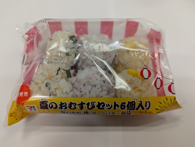 セブンイレブン 「夏のおむすびセット 6個入り 鮭わかめ・梅・コーンバター醤油」 (2025/07/17)