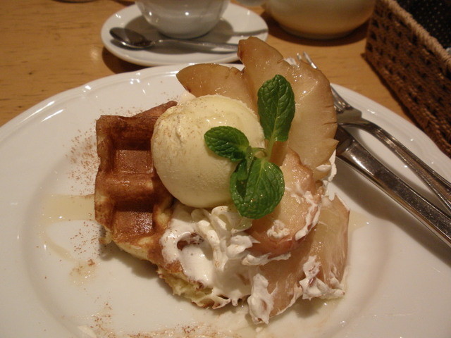 フワフワのワッフル、サクサクの焼きリンゴ、バニラアイスクリームに甘~~いハニーが絡んで文句なしに美味しい!!