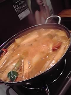 柔らかい豆腐、アサリ、玉ねぎ、ズッキーニ?が入っていて、辛さほどほどでさっぱりとしたお味でした。
