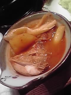 ダックトリタン: 骨付き鶏肉、長ねぎ、じゃがいも、にんじんを唐辛子スープで煮込んだもの。