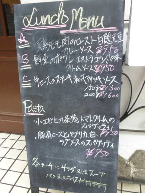 私は注文しませんでしたが、ランチメニューには、有機栽培コーヒー、紅茶(どちらも250円)、デザート+ドリンク(500円)、生ビール(500円)、グラスワイン赤・白(600円)、ボトルワイン赤・白(価格はお店で確認)が付けられます。
