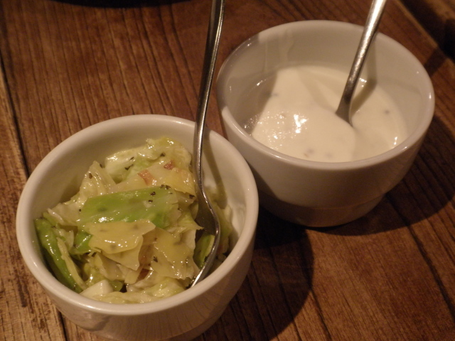 付いてきたライタと、キャベツのマリネをかけていただくと、風味が変わって又楽しいです。
