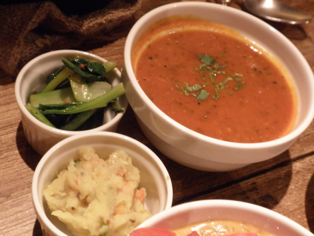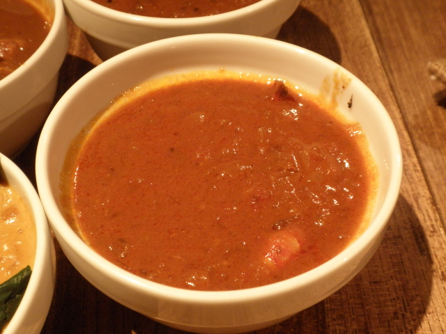 ラッサム: トマトベースで酸味があり、こちらもどろりとして濃厚。
