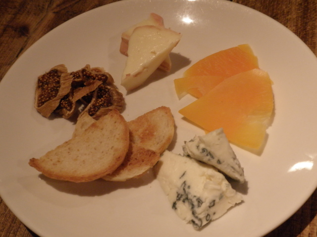 チーズの盛り合わせ: チーズは、ミモレット、タレッジョ、ゴルゴンゾーラで、白イチヂクのスライスとトーストが添えられ、いずれも風味豊かでした。