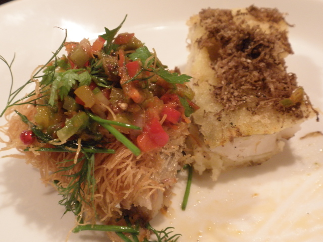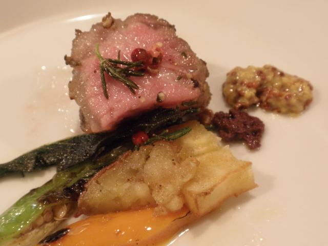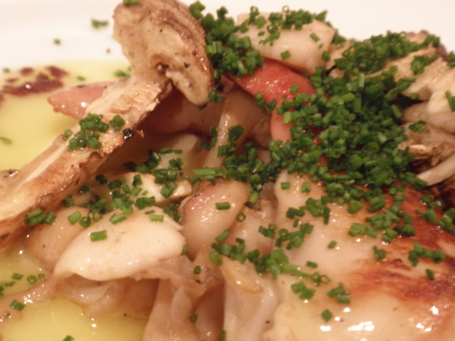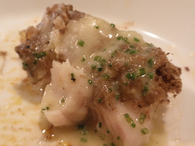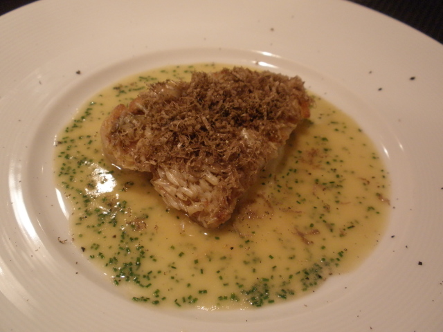 中央にジャガイモ(でしょうか?)を使った粘質のソースは(私には)濃厚なバター風味で、トリュフの香りがやや抑え込まれてしまったように感じました。