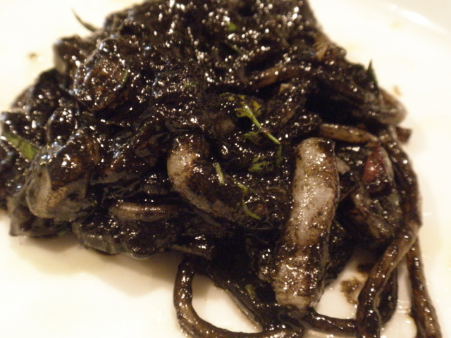 プリプリした白イカの歯応えに、濃厚でとろけるようなイカスミソース。