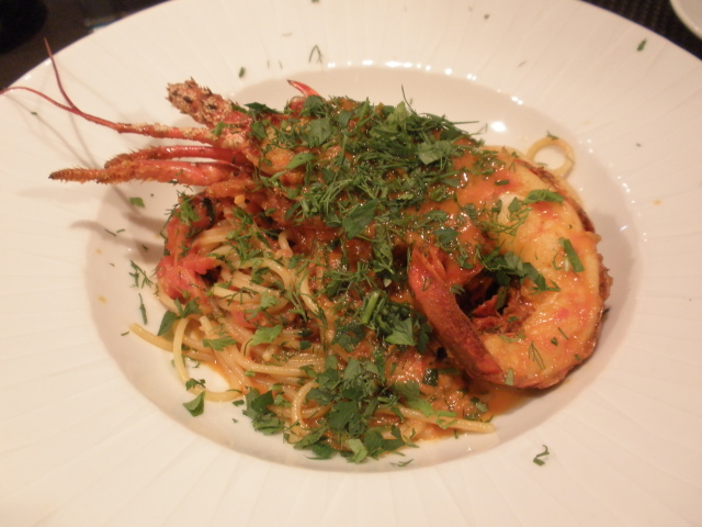 伊勢海老の火入れ加減は良好、旨味の染み出たソースはガーリックとチリが効いて飽きさせません。