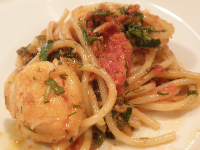 南房総産 伊勢海老 スパゲッティ 香草トマトクリームソース;取り分けて