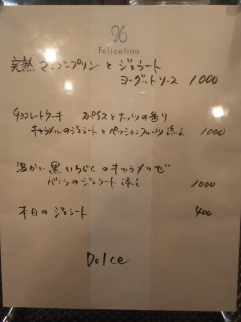 アロマフレスカを継承する2人のシェフのお店と聞いていましたが、調理とサービスが分担されており、提供の間隔等特に問題はありませんでした。