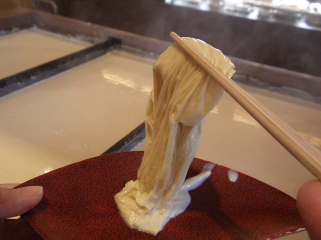 次に行ったときは見事に膜をはった状態だったので綺麗な湯波がすくえました。