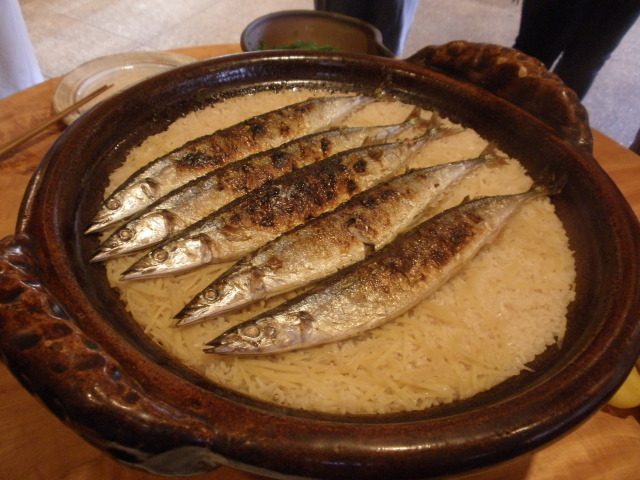 食事 秋刀魚釜めし 赤出汁 香の物: 大きな土鍋で炊かれたご飯の上に焼いた秋刀魚がのって登場したときは正に圧巻!