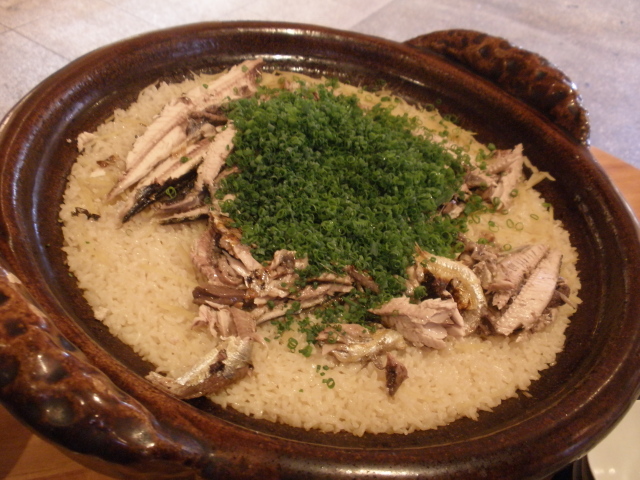 ふっくらと炊けた醤油出汁のご飯に生姜の香りと葱の爽やかさが加わり、極上の秋刀魚釜めしとなりました。