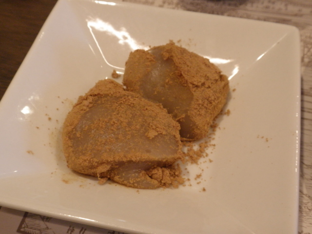 柔らかくぷるんとしたわらびもちは、優しい甘さで、わずかにニッキが効いたきなことも好相性でした。