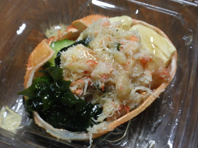 ズワイガニとゆばの土佐酢ジュレ(480円): ズワイガニの甲羅の中に、湯波とほぐした蟹身がたっぷりとのり、土佐酢のジュレがかかっていました。