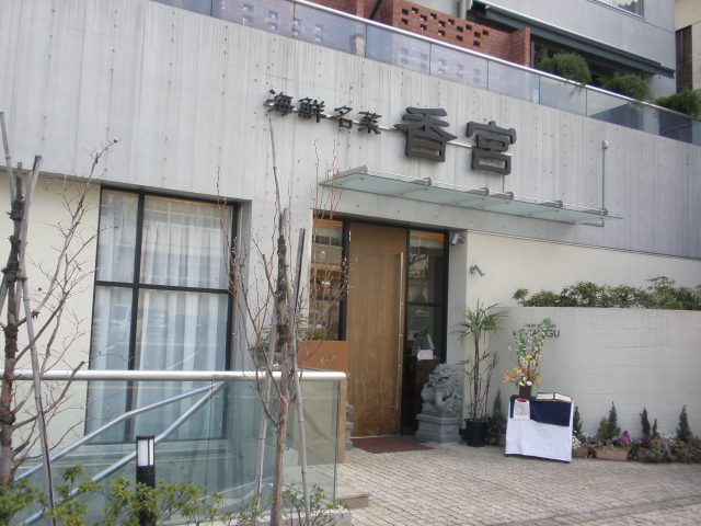 左に折れて道(星条旗通り)なりに歩いて行くと、左側にコンクリートのモダンな外壁に‘海鮮名菜 香宮’の文字が見えてきます。