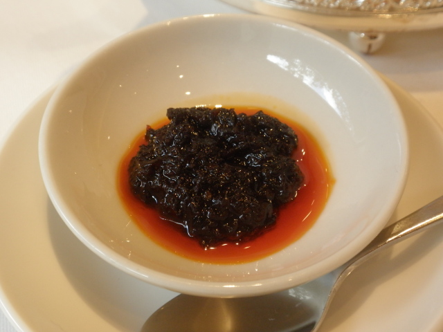 「お好みでつけて召し上がってください」と添えられた辛味噌(後で辣椒醤だとわかります)は、辛味、苦味、香ばしさ・・・全てのお味が一体となりまろみを感じるほど。