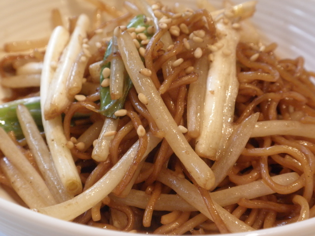 ウルイとモヤシの醤油焼きそば;アップ