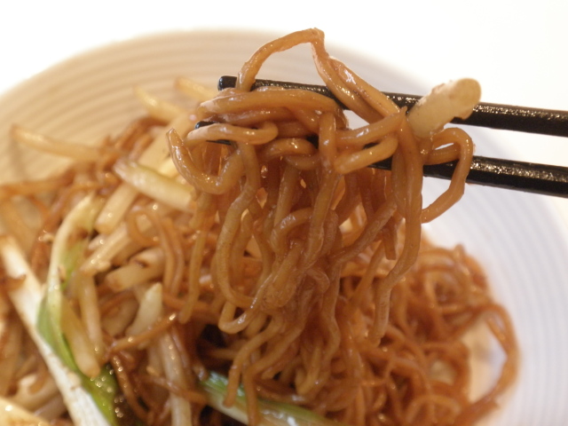 ウルイとモヤシの醤油焼きそば;麺はこんな感じ