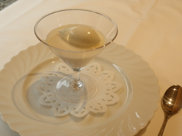 アンニン豆腐 牛乳のアイスをのせて;アップ