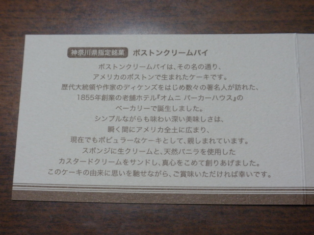 看板商品であるボストンクリームパイは、ボストンの老舗ホテル「オムニパーカーホテル」のベーカリーで出来たボストンクリームパイを、1957年から独自のアレンジを加えながら作り上げてきたものだそう。