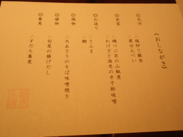 お通しからは秋、お蕎麦からは去り行く夏、季節感もたっぷり。