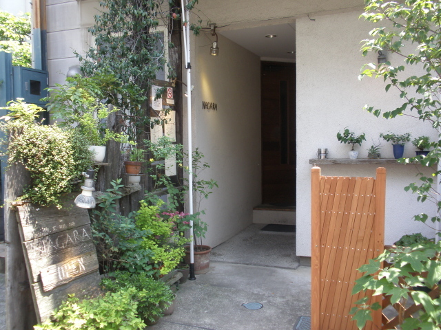 木々と植木に囲まれ、‘玄挽蕎麦 NAGARA’とある看板も、まるでカフェのような外観。