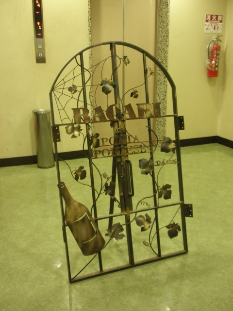 エレベーターホールにワインと葡萄の模様の看板があり、入口前の細い通路に置かれた椅子に数名の待ち客が既に座っていました。