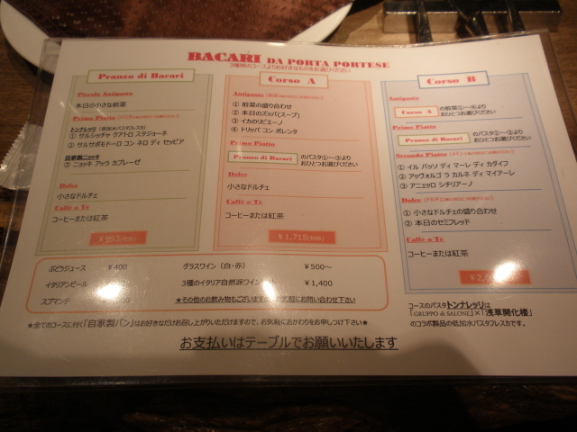 「予約したのでCorso Aからなんですよね?」と確認すると、「まぁそうですが、もしどうしてもというならこちら(一番安いコース)もできますよ」とかなり柔軟なお答え。
