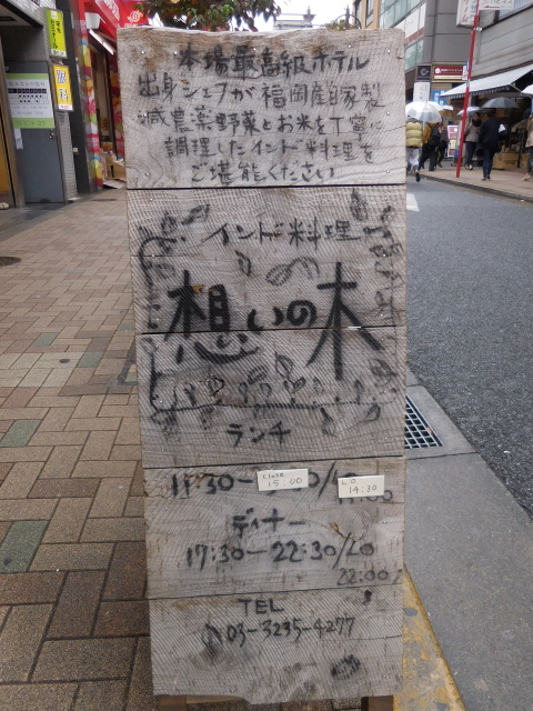 神楽坂上交差点を右折し少し行くと、左手に素朴な木の看板が路上に出ていました。