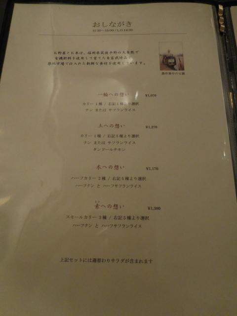 ★土への想い カリー1種、ナン または サフランライス タンドールチキン 1,270円