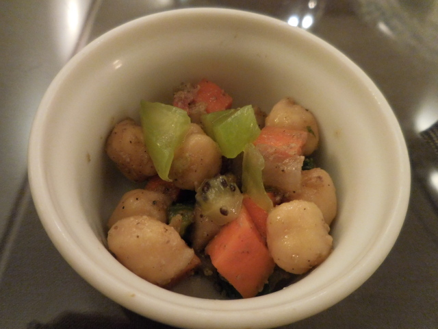 ほっくりしたヒヨコ豆に、ニンジンが硬めに仕上げてあって食感が楽しく、キウイを入れてあるところがなかなか斬新な感じがしました。