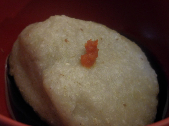 下に敷かれた汁をつけるとぐっと味が引き締まり、上にのったかんずりがピリリとアクセントを付けていました。