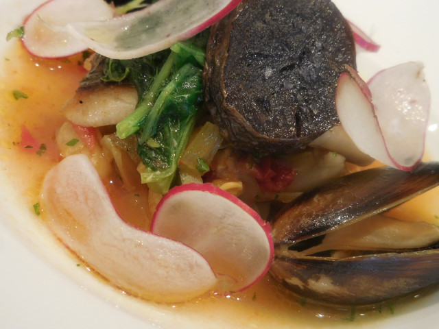 本日の白身魚 ミネストローネ ムール貝と;アップ