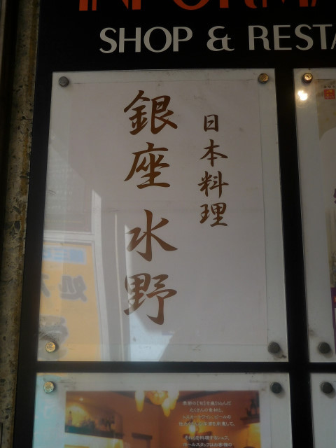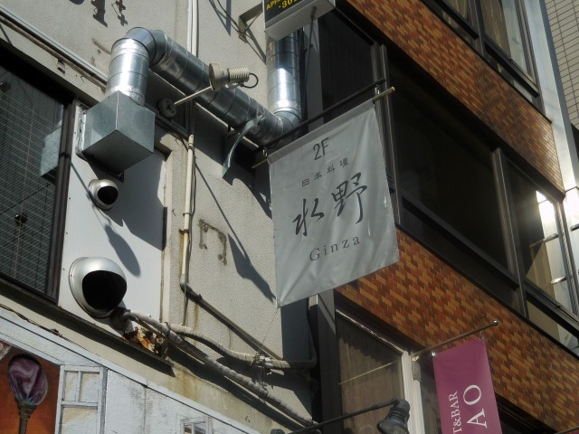 東京メトロ 銀座駅C8出口を出て並木通りを銀座一丁目駅方向に歩き、一つ目の角を右折して銀座マロニエ通りに入り、2つ目の角をさらに右折して少し行くと右側に‘水野’と書かれた旗が翻っているのを見つけました。