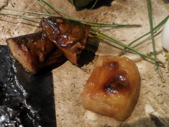 子持ち鮎の甘露煮、ブルーチーズの粟麩田楽