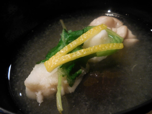 ぷるっと弾力のあるぐじとねっとりとコクのある白子に餡をわずかに効かせた上品な出汁。