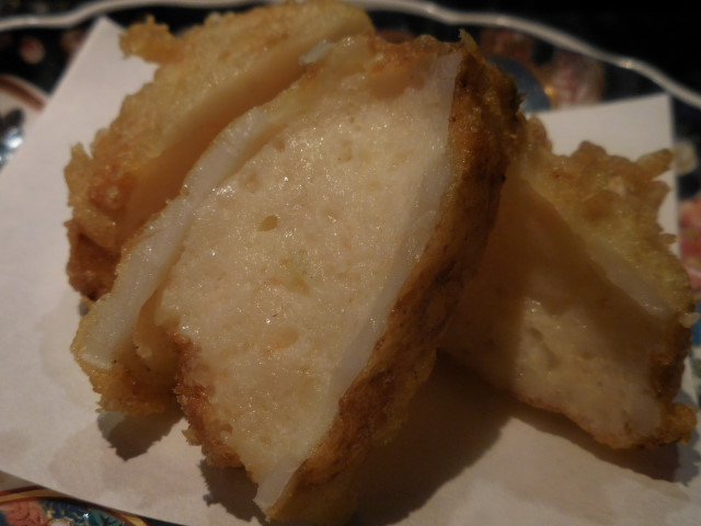 海老しんじょの蓮根はさみ揚げ;アップ