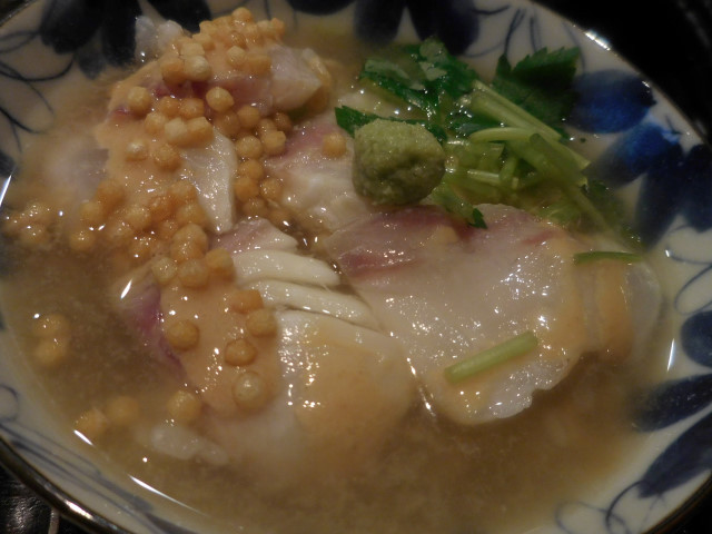 あられがはらはらと香ばしく、鯛の風味と胡麻だれが出汁に溶け出してきます。