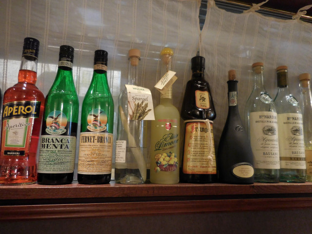 カウンター前には各種リキュールの瓶が並び、インテリアにもなっています。