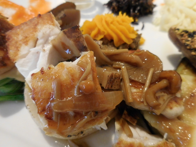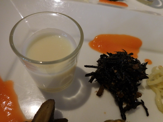 小さく切った蓮根とキノコのとろっとしたソースとバジルソースの2種類味わうことができました。