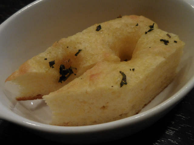トウモロコシ粉を使っているので、通常のフォカッチャよりサクッとした食感で多少の引きがあります。