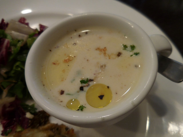 さつまいものポタージュ: 小さいカップに入り、オリーブオイルとパセリのみじん切りが散らしてありました。