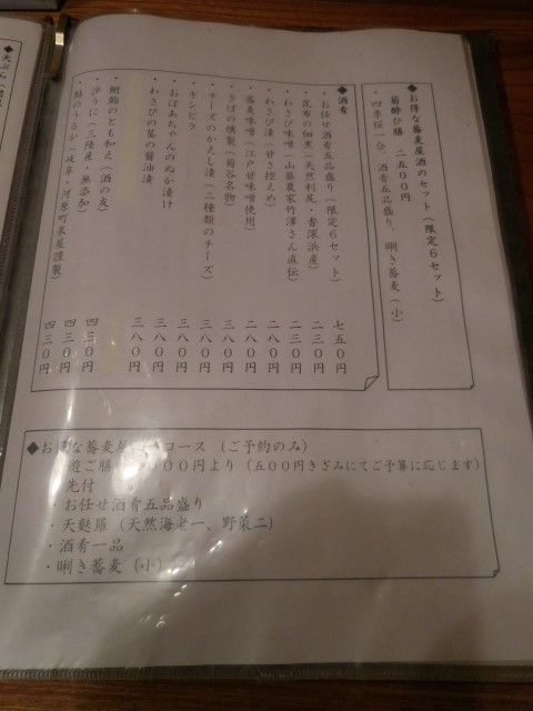 ■お得な蕎麦屋酒のコース(ご予約のみ)
