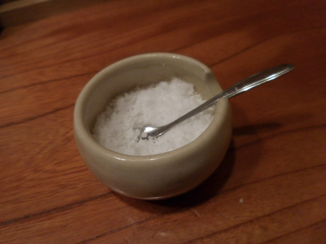 卓上にあった「宮城県の釜たき塩もお好みでどうぞ」とのこと。
