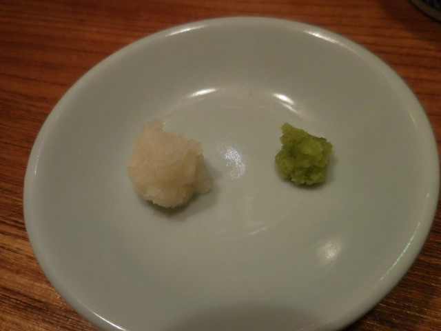 薬味は大根おろしと山葵が少々。