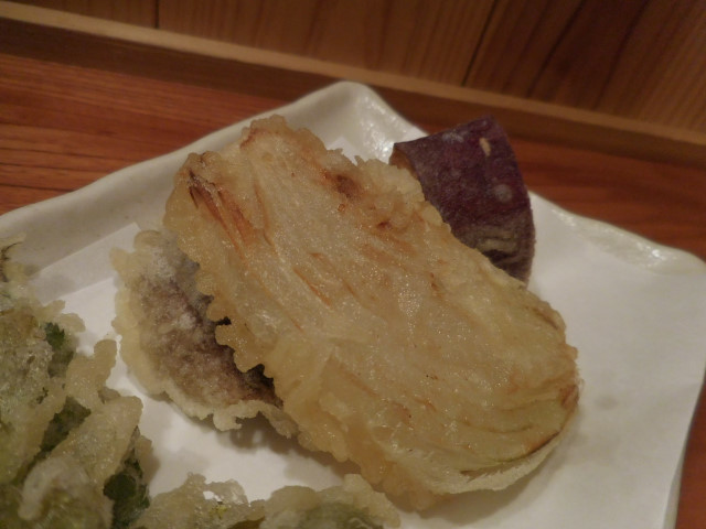 うどは歯応えと共にとろりとした食感があり、揚げ油の香ばしさで甘味が活かされ、後の苦味が心地良かったです。